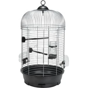 Vogelkooi Julia 3 zilver De vogelkooi Julia 3 is een ronde vogelkooi in de kleur zilver met een zwarte onderbak of goud met een bruine onderbak. Strak afgewerkt, inclusief zitstokjes en drink en voederbakjes. Dit model is horizontaal gespijld speciaa…