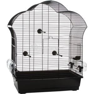 Vogelkooi Laura 3 zwart Vogelkooi Laura 3 is een fraai vormgegeven kooi, welke zeer strak is afgewerkt. De kooi is geschikt voor verschillende vogels. Inclusief badhuisje, zitstokjes en drink en voederbakjes. Te combineren met de metalen vogelkooista…