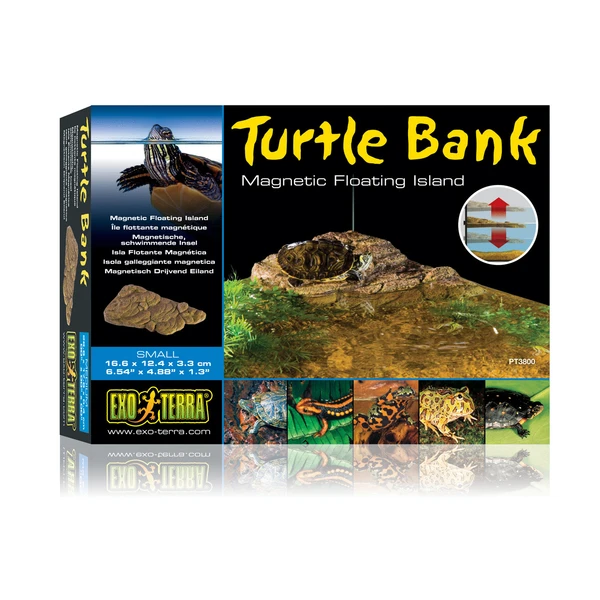 Exo Terra Schildpaddeneiland Turtle Bank Small – Ornamenten – 16.6×12.4×3.3 cm direct bestellen in onze webshop! De Exo Terra Turtle Bank is een unieke drijvende plaats om te zonnen voor waterschildpadden. Gezien hij door magneten op zijn plaats gehouden wordt, kan de Exo Terra Turtle Bank in de hoeken van het terrarium aangebracht worden en zodoende het zwemgebied maximaal houden. Past zich automatisch aan aan elke waterstand. De onder water liggende helling maakt het de schildpadden gemakkelijk in en uit het water te klimmen naar een droge rustplaats om maximaal te genieten van de warmte en de UVB-lampen. Verkrijgbaar in 3 maten waardoor het in elke maat schildpaddenterrarium past, of meerdere Turtle Banks in één terrarium kunnen worden aangebracht.. Alle Exo Terra voor uw Reptiel uit voorraad leverbaar!