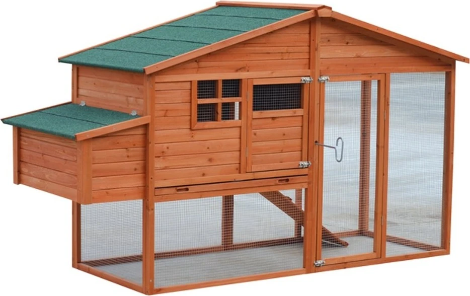 Dit duurzame kippenhok is van een zeer hoogwaardige kwaliteit. Dit kippenhok is voorzien van een afsluitbaar nachthok, een extra grote mestlade, een legnest, zitstokken en een roofing dakbedekking.