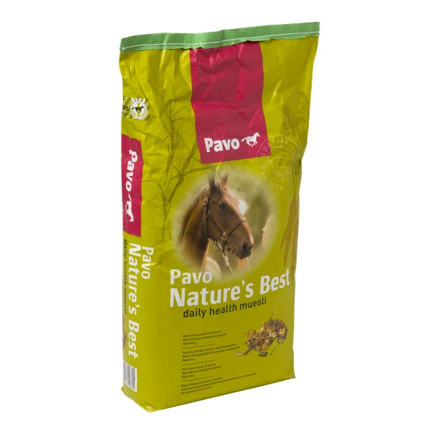 Pavo Nature’s Best is een structuurrijk product en stimuleert het kauwgedrag van uw paard. De muesli van Pavo is havervrij en bevat zeer weinig suiker en zetmeel.